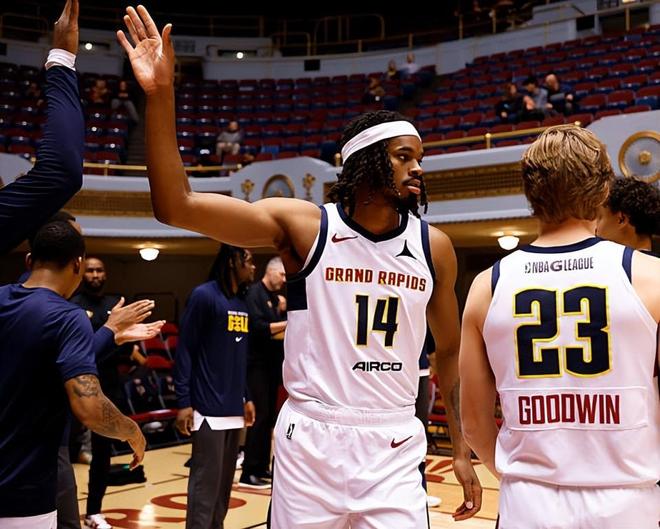 在此前的一场NBA发展联盟比赛中,芝加哥公牛在NBA发展联盟的下属球队风城公牛以139比134战胜了主场作战的丹佛掘金在NBA发展联盟的下属球队大急流城黄金。本场比赛后,风城公牛的战绩提升到了6胜6负,而大急流城黄金的战绩则是下滑到了9胜4负。本场比赛中,虽然大急流城黄金输掉了比赛,但是被掘金下放到NBA发展联盟赛场进行锻炼的内线新星达隆-霍姆斯二世(Daron Holmes II)的表现依然是相当不错的。霍姆斯全场出场39分38秒,投篮14中8,三分线外7中4,罚球5中5,拿下了27分7篮板5助攻2盖帽的数据,还有1次失误和2次犯规,正负值也是全队较高的-3。霍姆斯在进攻端展现出了全面的得分能力,不仅能够在对手内线制造威胁,而且在外线投篮方面的表现也是相当突出的。霍姆斯在传球和策应方面的表现同样是值得肯定的,同样起到了很好的效果。霍姆斯在防守端的表现其实也并不差,同样是能够发挥出一定的效果的。在本场比赛中,霍姆斯也是又一次打出了攻守兼备的表现,只是对手的表现更加出色,他们最终还是输掉了比赛。霍姆斯出生于2002年8月,现年21岁,是去年NBA选秀大会中掘金在首轮第22顺位选中的来自戴顿大学的内线球员。根据联合试训体测环节的数据,霍姆斯的裸足身高为205.1cm,体重为107.1kg,臂展为215.9cm,站立摸高为274.3cm。霍姆斯被掘金寄予了厚望,然而他在去年夏天的NBA夏季联赛期间遭遇了前十字韧带撕裂并且直接赛季报销,上赛季霍姆斯没有参加一场NBA或者是NBA发展联盟的比赛。一直到今年夏天的NBA夏季联赛,他才完成了复出,相当于他也是白白浪费了一个赛季的时间,这也确实是一件有些让人遗憾的事情。本赛季开季至今,霍姆斯在NBA常规赛中总共只得到了2场出场机会,场均出场时间只有2.2分钟,场均数据为1.5分,还有0.5次犯规,投篮命中率100%,三分命中率100%。在本赛季的NBA发展联盟赛场,霍姆斯总共出场12次,场均出场时间达到了34.7分钟,场均数据为20.6分7.6篮板3.5助攻0.5抢断1.3盖帽,还有1.7次失误和2.3次犯规,投篮命中率50.9%,三分命中率37.3%,罚球命中率86.8%。其实霍姆斯在NBA发展联盟赛场的表现是颇有亮点的,他也是能够在攻防两端起到很好的效果的。因此我们也是不太理解,为什么掘金不愿意给他更多的表现机会呢?